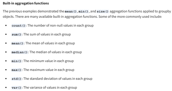 - Link: More on grouping and aggregation : .groupby( ), .min (), .size( )